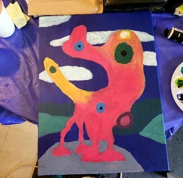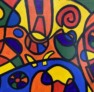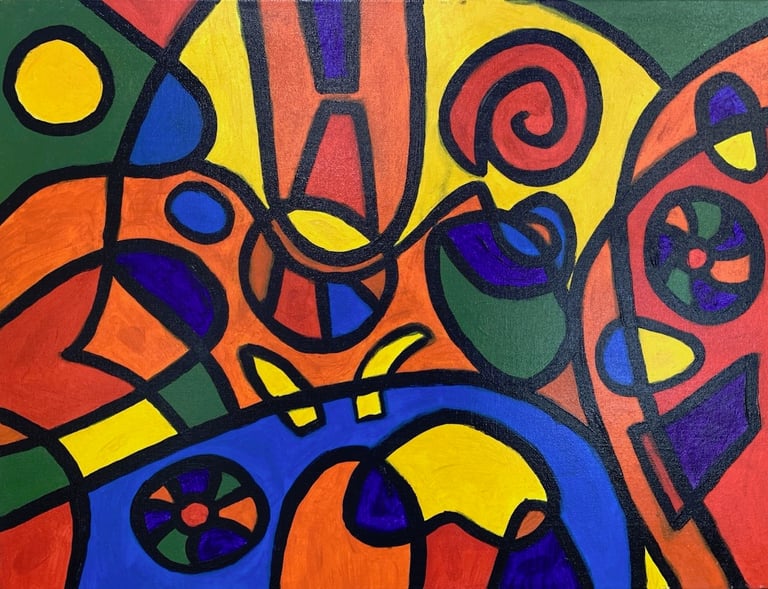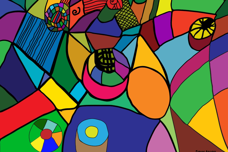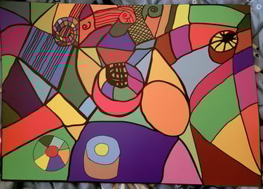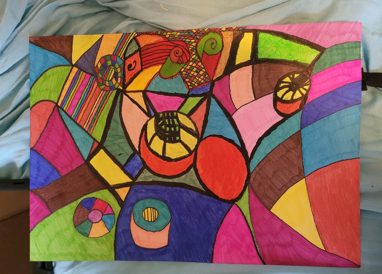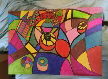 A colourful abstract musical artwork I made using textas and a pencil sketch. I also made a digital version for printing using inkscape to of the same artwork as well.